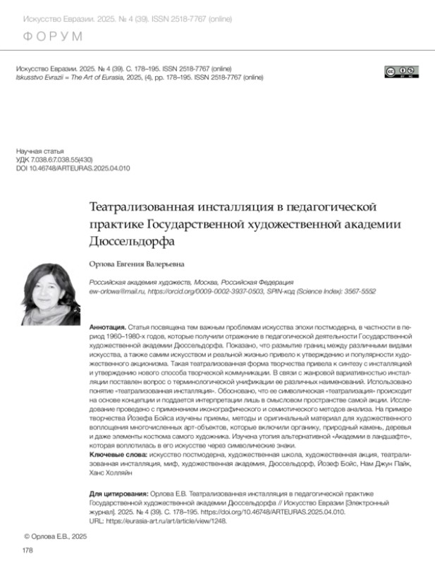 Орлова Е.В. Театрализованная инсталляция в педагогической практике Государственной художественной академии Дюссельдорфа // Искусство Евразии [Электронный