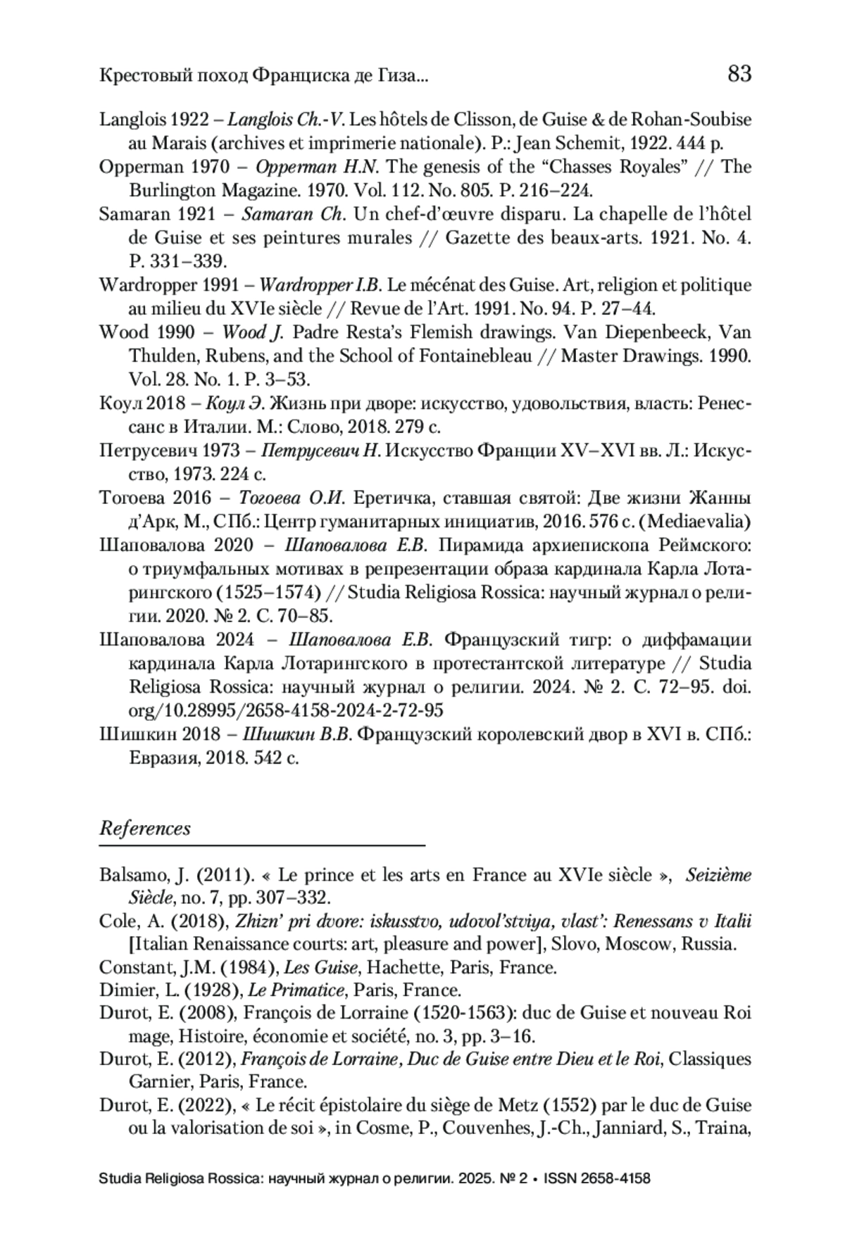 10. Wardropper 1991 - Wardropper I.B. Le mécénat des Guise. Art, religion et politique au milieu du XVIe siècle // Revue de l’Art. 1991. No. 94. P. 27-44.