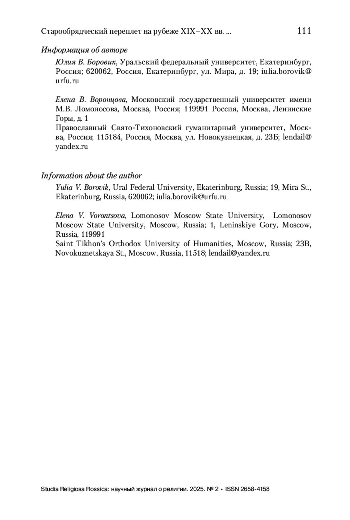 Вступительное слово редакции журнала “Studia Religiosa Rossica”.