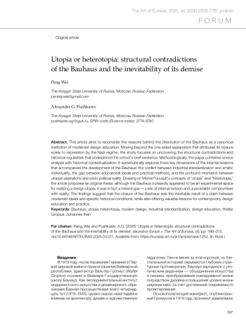 Пэн Вэй, Пушкарёв А.Г. Утопия или гетеротопия: структурные противоречия Баухауза и неизбежность его заката // Искусство Евразии [Электронный журнал]. 2025. No 4 (39).