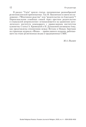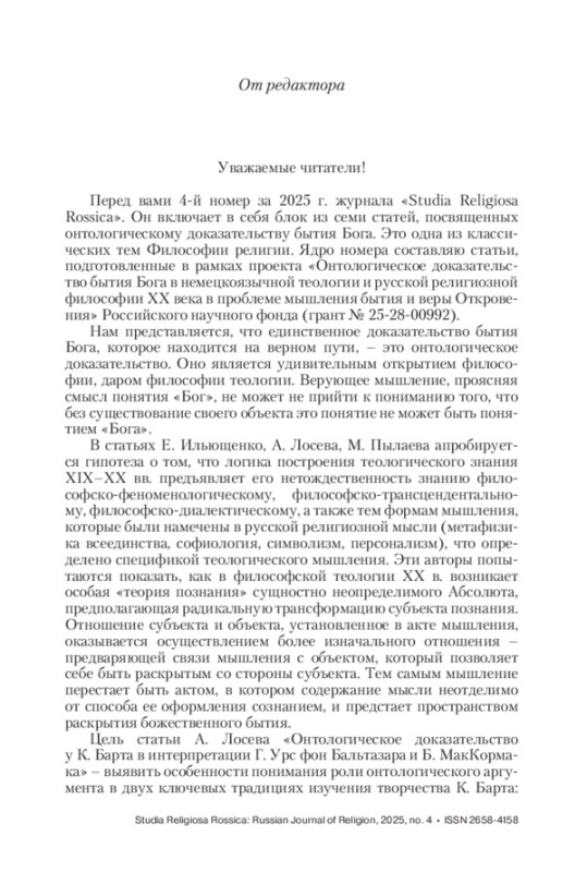 Вступительное слово редакции журнала “Studia Religiosa Rossica: научный журнал о религии”.