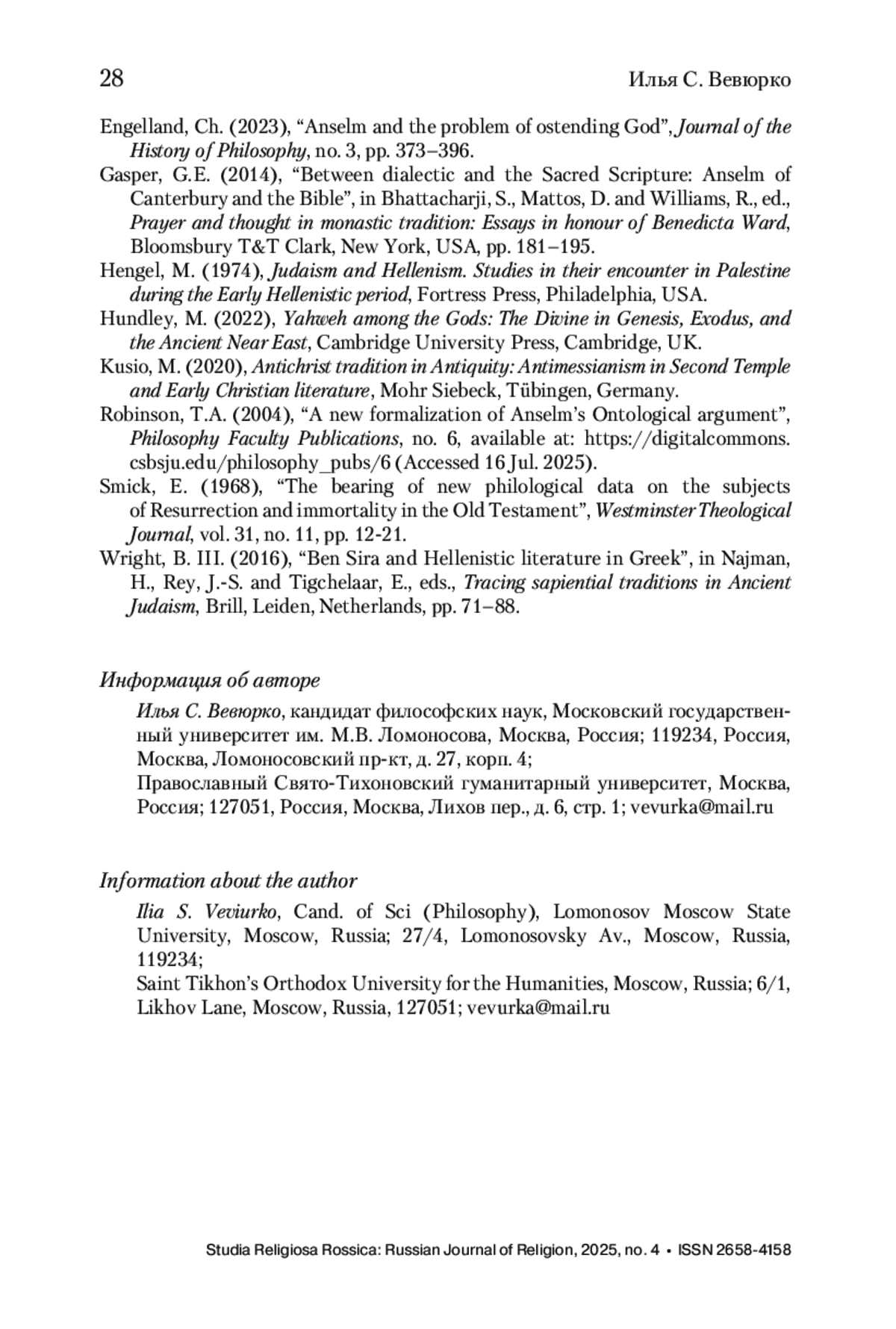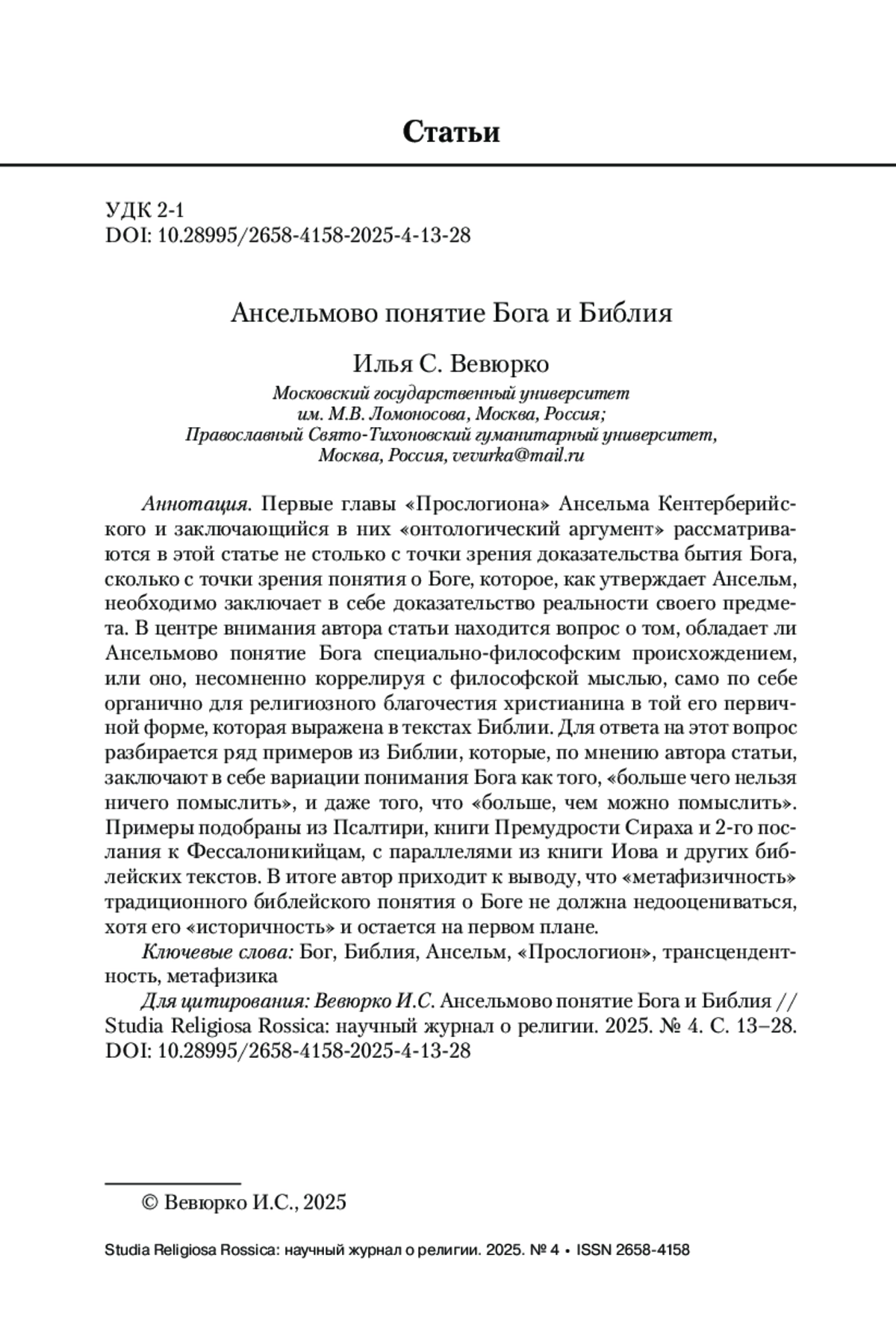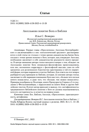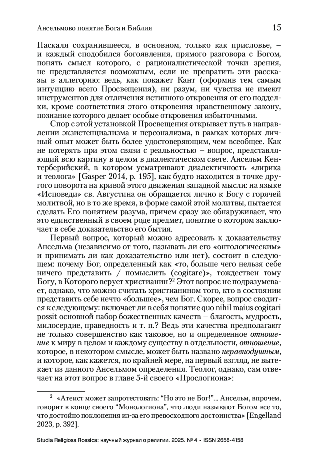 4. Engelland 2023 - Engelland Ch. Anselm and the problem of ostending God // Journal of the History of Philosophy. 2023. No. 3. Р. 373-396.