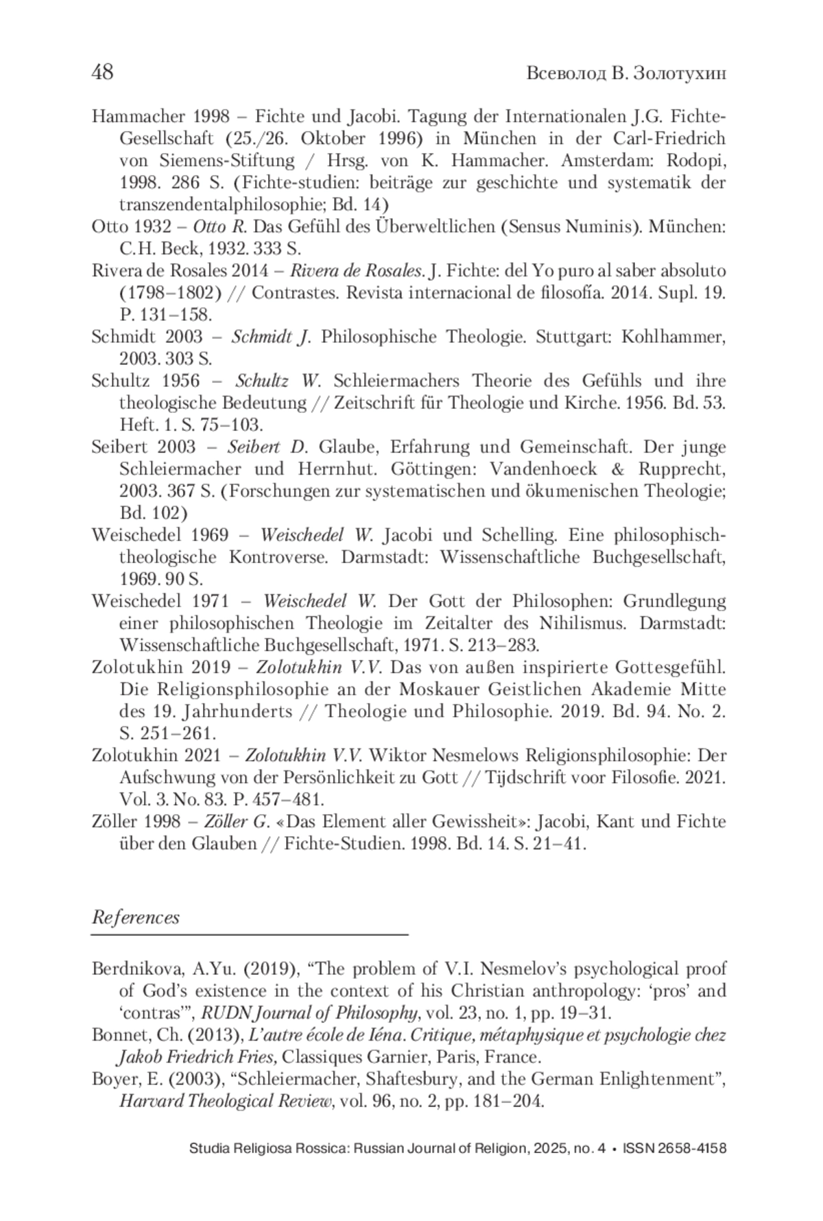24. Zolotukhin 2021 - Zolotukhin V.V. Wiktor Nesmelows Religionsphilosophie: Der Aufschwung von der Persönlichkeit zu Gott // Tijdschrift voor Filosofie. 2021. Vol. 3. No. 83. P. 457-481.