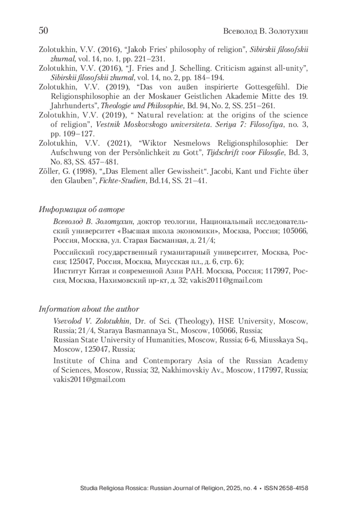 4. Золотухин 2016a - Золотухин В.В. Философия религии Якоба Фриза // Сибирский философский журнал. 2016. Т. 14. № 1. С. 221-231.