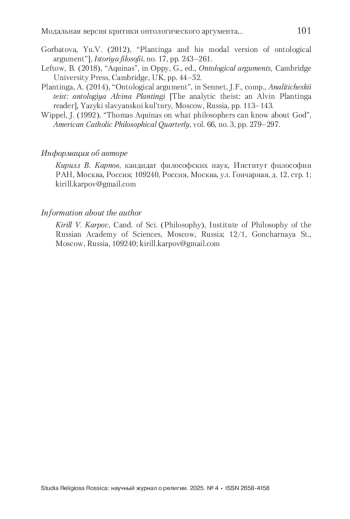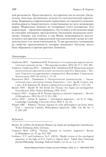 1. Горбатова 2012 - Горбатова Ю.В. Плантинга и его модальная версия онтологического доказательства // История философии. 2012. № 17. С. 243-261.