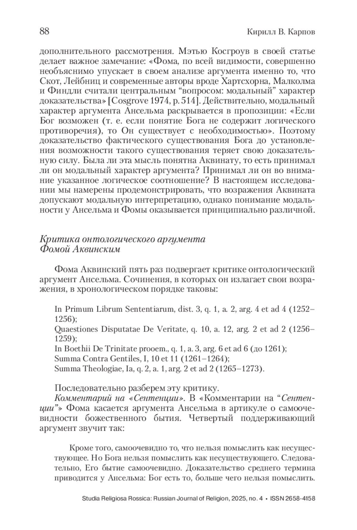 5. Cosgrove 1974 - Cosgrove M. R. Thomas Aquinas on Anselm’s Argument // Review of Metaphysics. 1974. No. 27. P. 513-530.