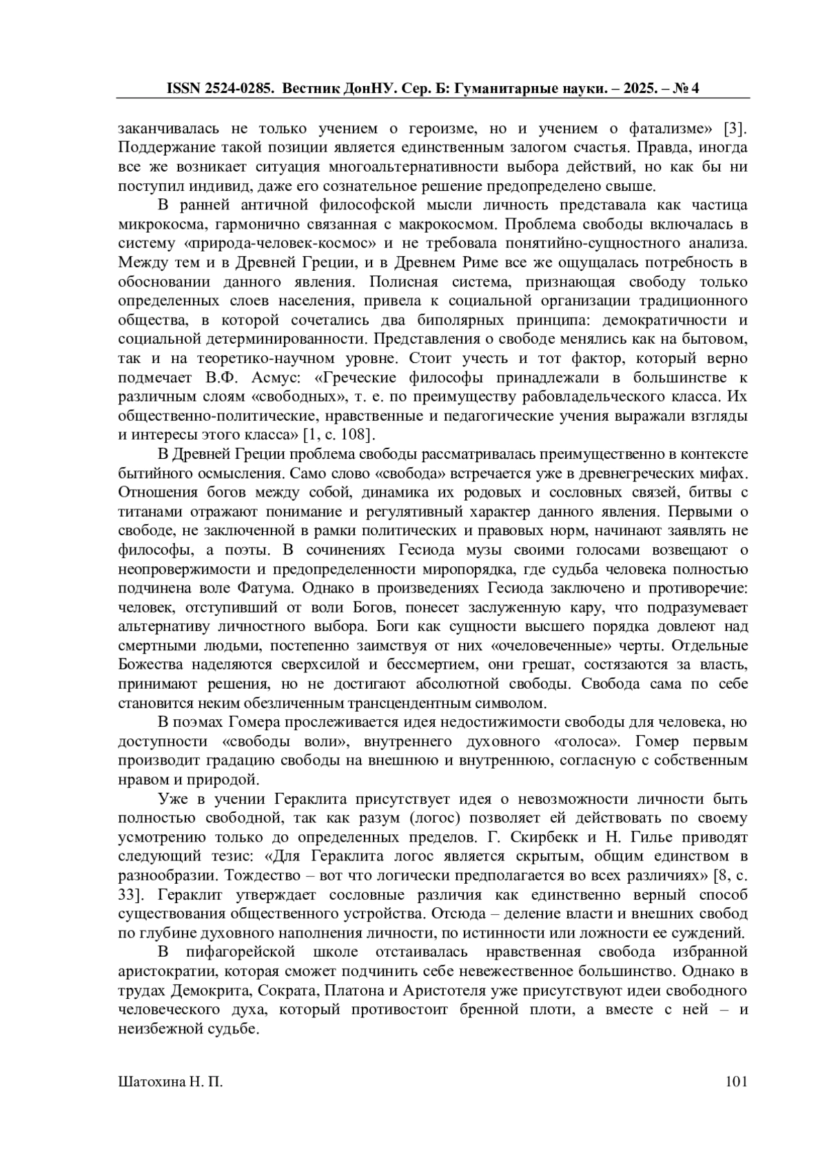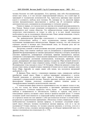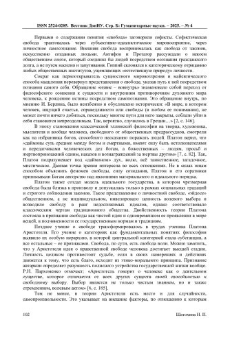 6. Пархоменко Р.Н. Генезис идеи свободы в западноевропейской философии / Р.Н. Пархоменко // Философская мысль. - 2012. - № 4. - С. 179-210.