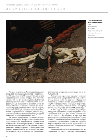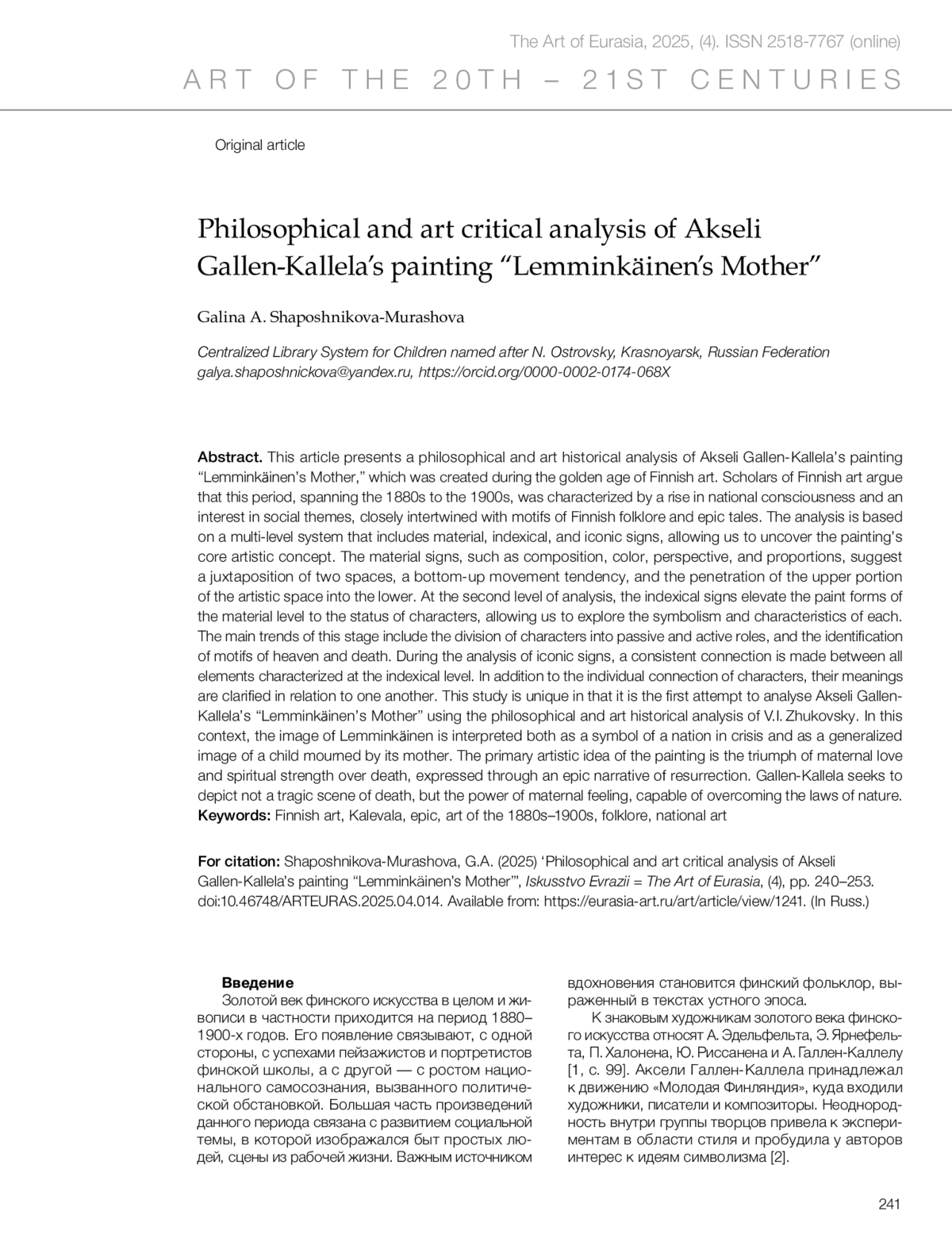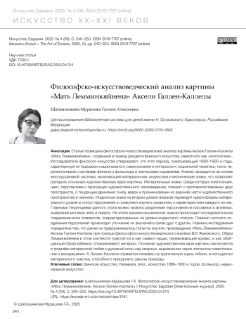 Шапошникова-Мурашова Г.А. Философско-искусствоведческий анализ картины «Мать Лемминкяйнена» Аксели Галлен-Каллелы // Искусство Евразии [Электронный журнал]. 2025.