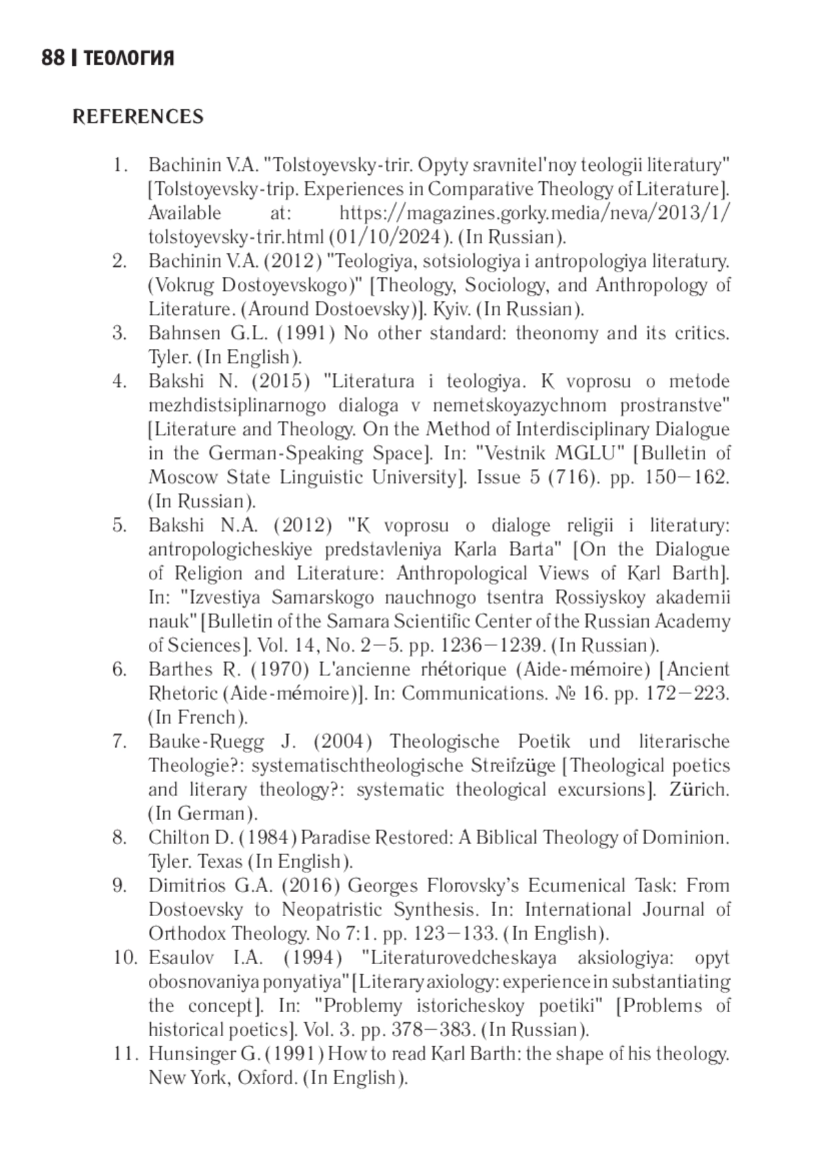 3. Бакши Н. А. К вопросу о диалоге религии и литературы: антропологические представления Карла Барта // Известия Самарского научного центра Российской академии наук. 2012. Т. 14, № 2-5. С. 1236-1239. EDN: PVYGJT