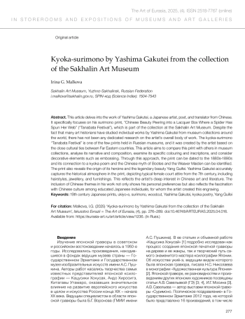 Малькова И.Г. Кёка-суримоно Ясимы Гакутэя из фондов Сахалинского областного художественного музея // Искусство Евразии [Электронный журнал]. 2025. No 4 (39). С. 276–289.