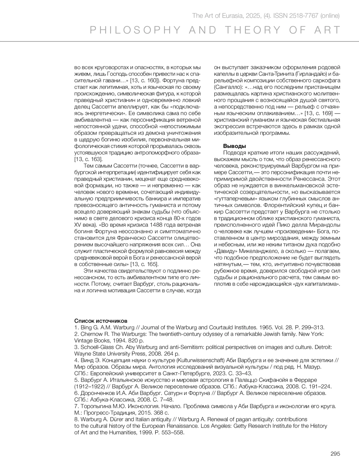 7. Toropygina, M.Yu. (2015) Iconology. The Beginning. The problem of the symbol in Aby Warburg and the iconology of his circle. Moscow: Progress‑Tradition. (In Russ.)