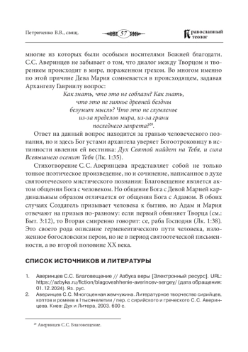 1. Аверинцев С.С. Благовещение // Азбука веры [Электронный ресурс]. URL: https://azbyka.ru/fiction/blagoveshhenie-averincev-sergey/ (дата обращения: 01.12.2024). Яз. рус.
