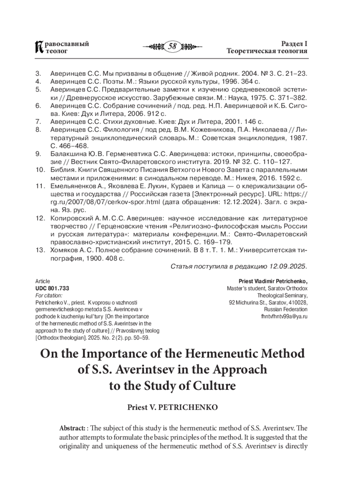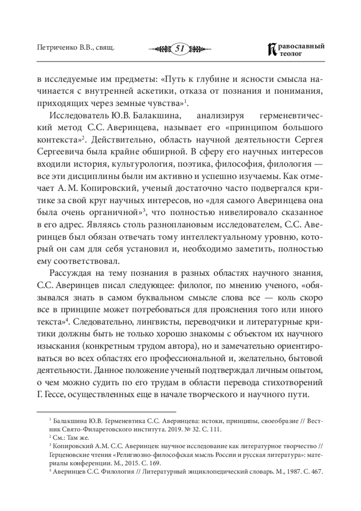 9. Балакшина Ю.В. Герменевтика С.С. Аверинцева: истоки, принципы, своеобразие // Вестник Свято-Филаретовского института. 2019. № 32. С. 110-127. EDN: QGSKIY