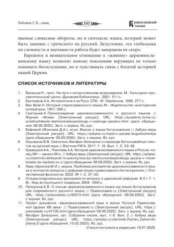 10. Петрухина Е.В. О пользе церковнославянского языка как языка богослужения для современного русского языка // Православие.ru [Электронный ресурс] URL: https://pravoslavie.ru/50215.html (дата обращения: 09.09.2025). Загл. с экрана. Яз. рус.