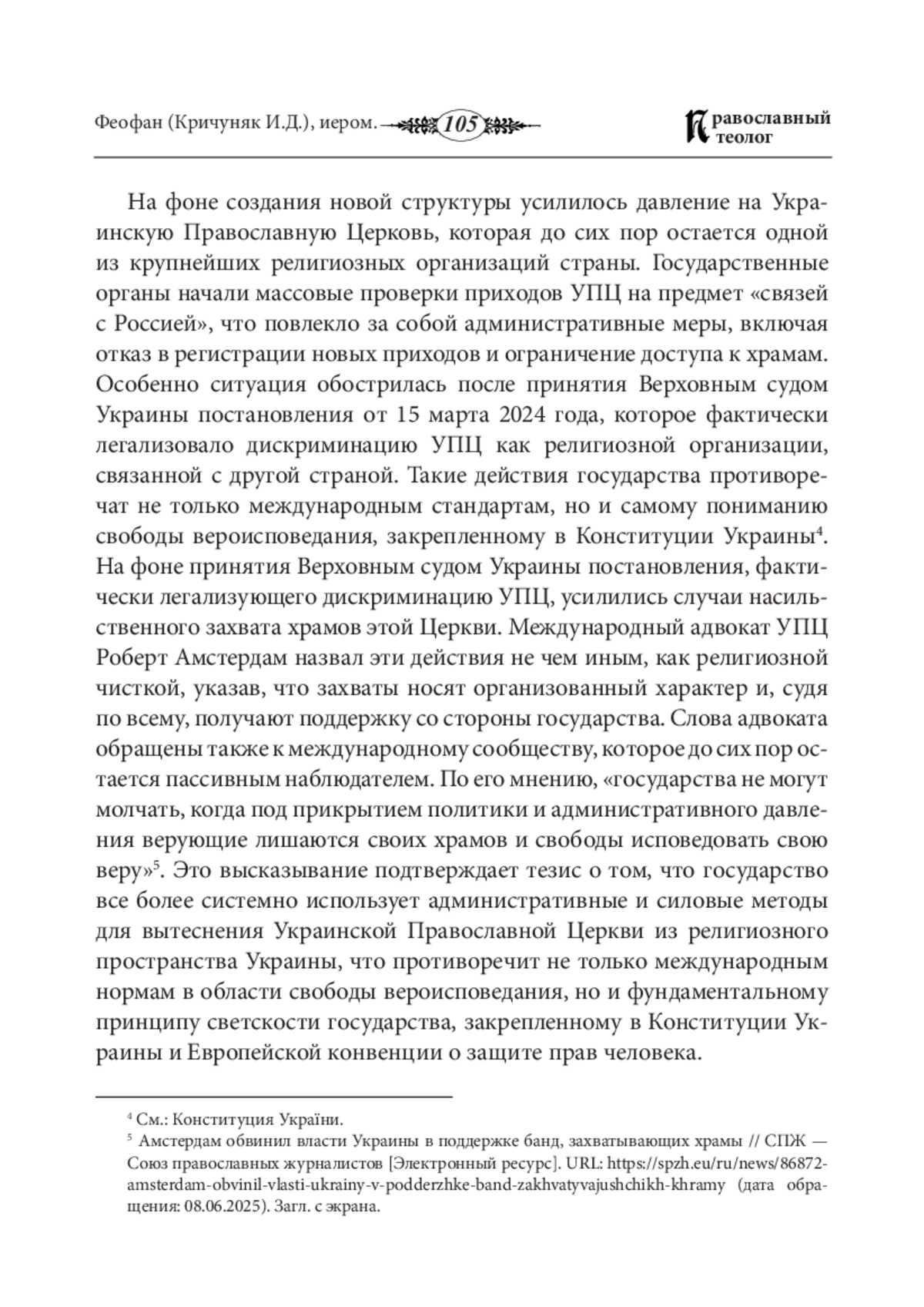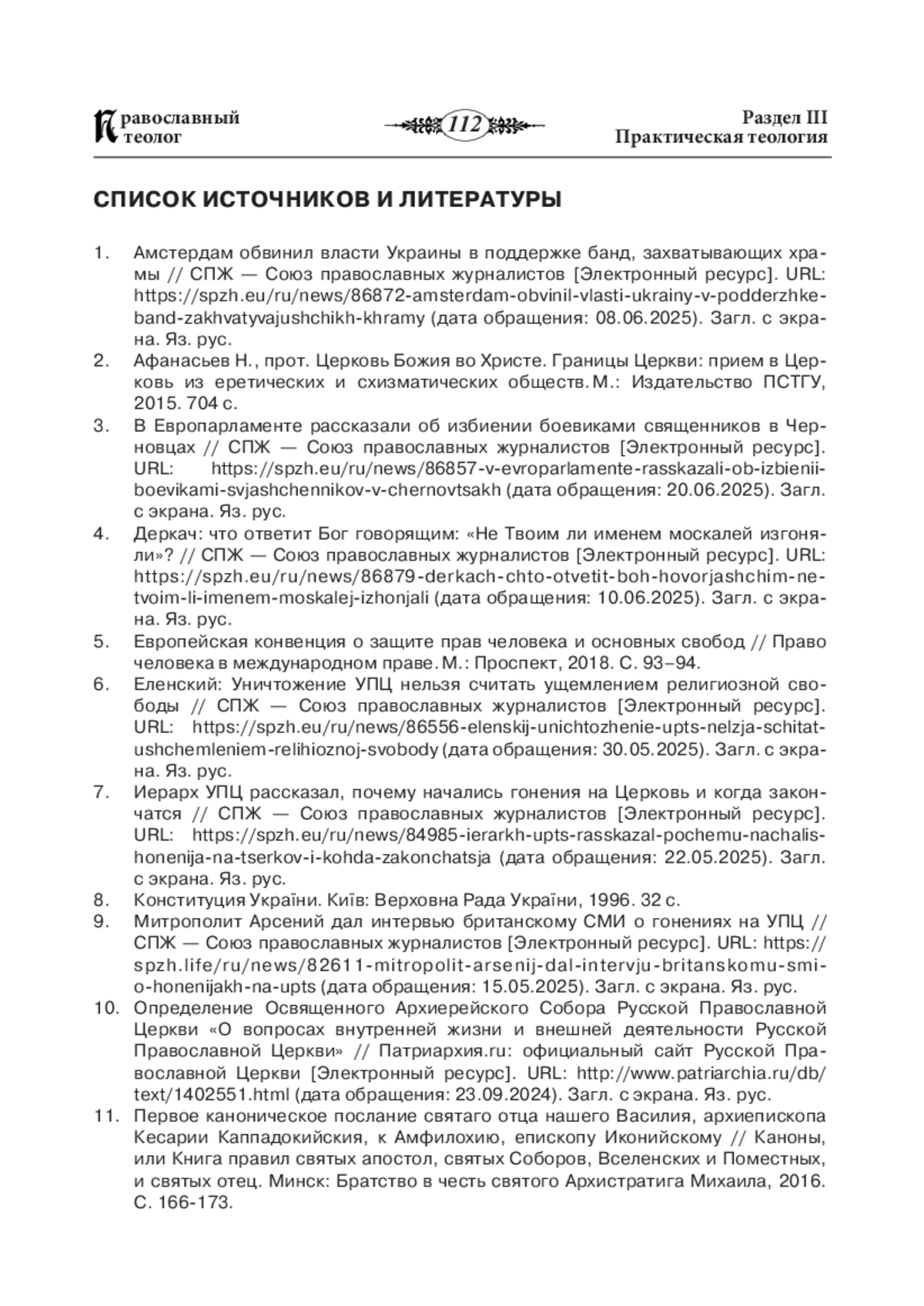 1. Амстердам обвинил власти Украины храмы // СПЖ Союз православных журналистов [Электронный ресурс]. URL: https://spzh.eu/ru/news/86872-amsterdam-obvinil-vlasti-ukrainy-v-podderzhke вподдержке банд, захватывающих -band-zakhvatyvajushchikh-khramy (дата обращения: 08.06.2025). Загл. сэкрана. Яз. рус.