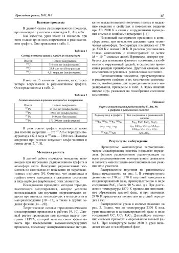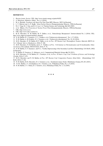 N. M. Barbin, M. R. Shavaleev, D. I. Terentyev, and S. G. Alexeev Computer modeling of processes with actinides in radioactive graphite at heating in a nitrogen atmosphere 42