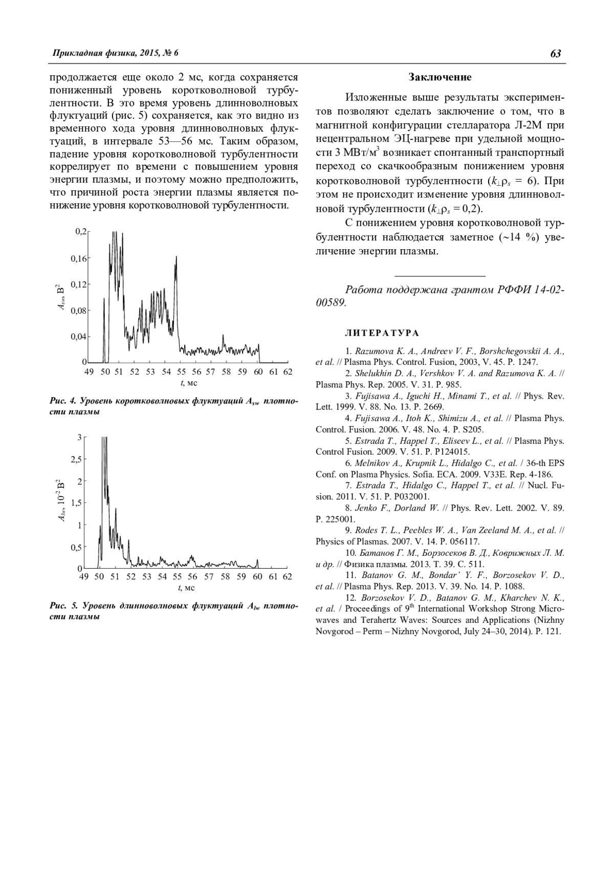 4. Fujisawa A., Itoh K., Shimizu A., et al. // Plasma Phys. Control. Fusion. 2006. V. 48. No. 4. P. S205.