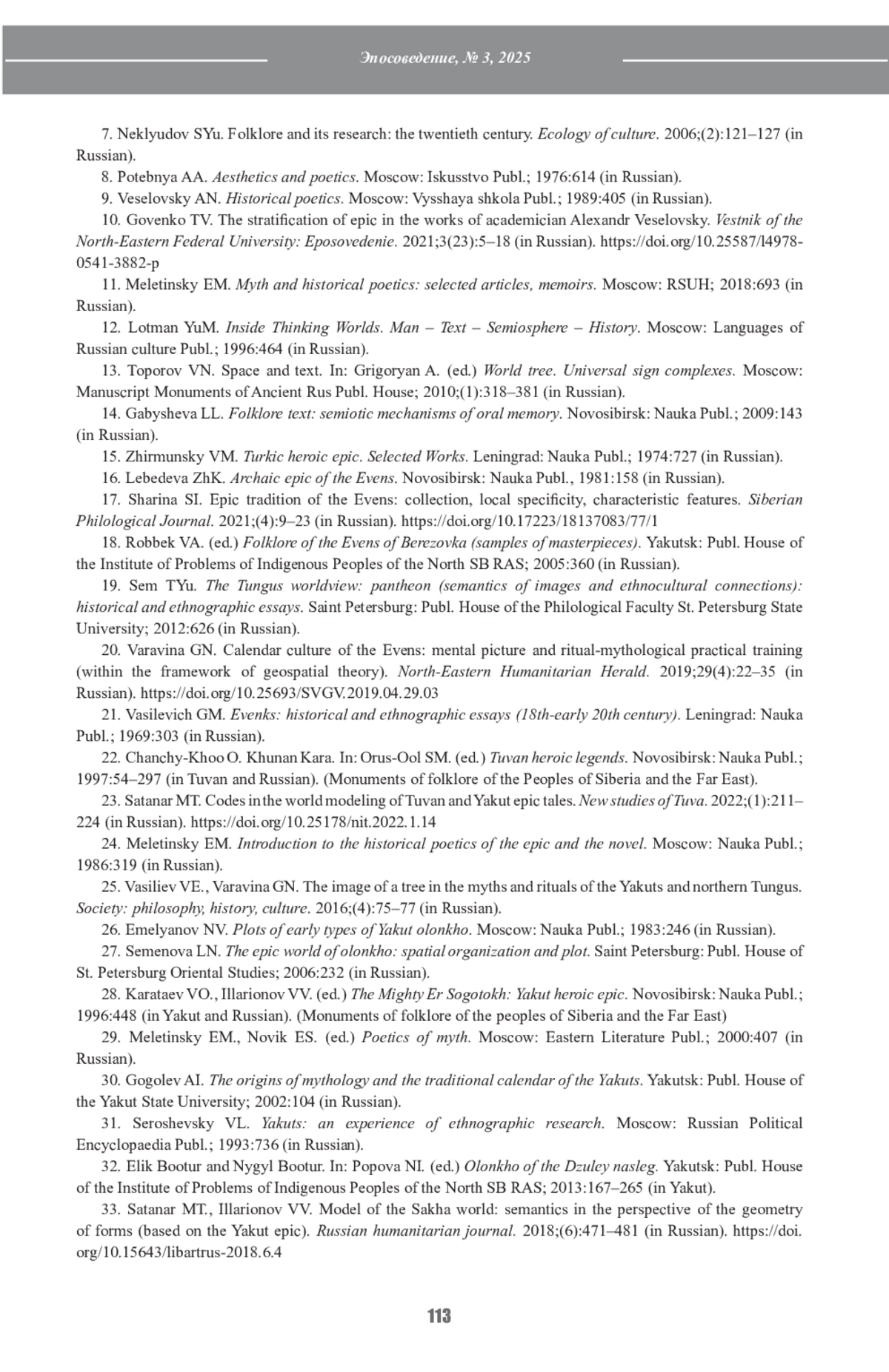 23. Сатанар М.Т. Коды в миромоделировании тувинского и якутского эпического сказаний. Новые исследования Тувы. 2022;(1):211-224. DOI: 10.25178/nit.2022.1.14