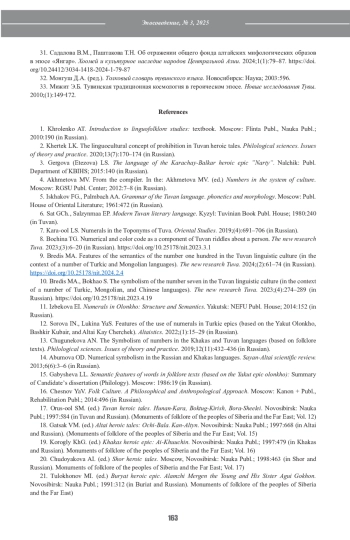 7. Кара-оол Л.С. Числительные в топонимах Тувы. Oriental Studies. 2019;(4):691-706.