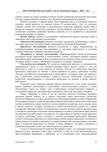 По мере старения российского общества недостаточное предложение на рынке труда становится все более очевидным. Защита трудовых прав и интересов пенсионеров при их повторном трудоустройстве может эффективно отвечать стратегическим требованиям активного старения, что соответствует принципу уважения труда и противодействия дискриминации. Могут быть приняты конкретные меры для уточнения статуса субъекта труда пожилых пенсионеров, совершенствования системы получения и выдачи пенсий, уточнения состава оплаты труда вышедшего на пенсию повторно занятого персонала и его разумной защиты, создания специальной системы охраны труда, а также улучшения защиты трудовых прав и интересы вышедшего на пенсию персонала и вновь принятого на работу.