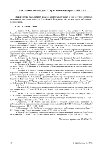 12. Винокуров, Е. Ф. О последствиях экономии на работающих российских пенсионерах [Текст] / Е. Ф. Винокуров // Вестник ЦЭМИ. - 2019. - № 1. - С. 7. EDN: KDNURJ
