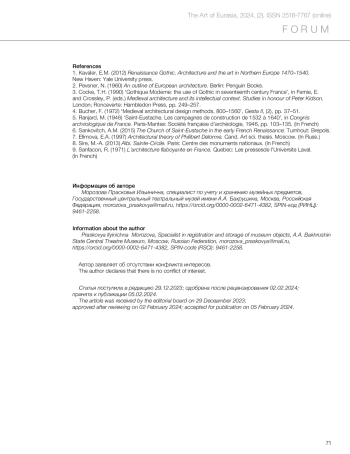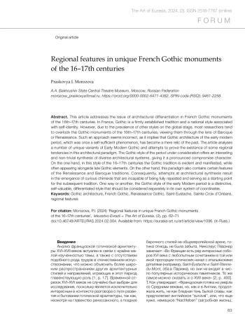 Морозова П. И. Региональные особенности в уникальных памятниках французской готики XVI–XVII веков // Искусство Евразии [Электронный журнал]. 2024. No 2 (33). С. 62–71. https://doi. org/10.46748/ARTEURAS.2024.02.004. URL: https://eurasia-art. ru/art/article/view/1096.