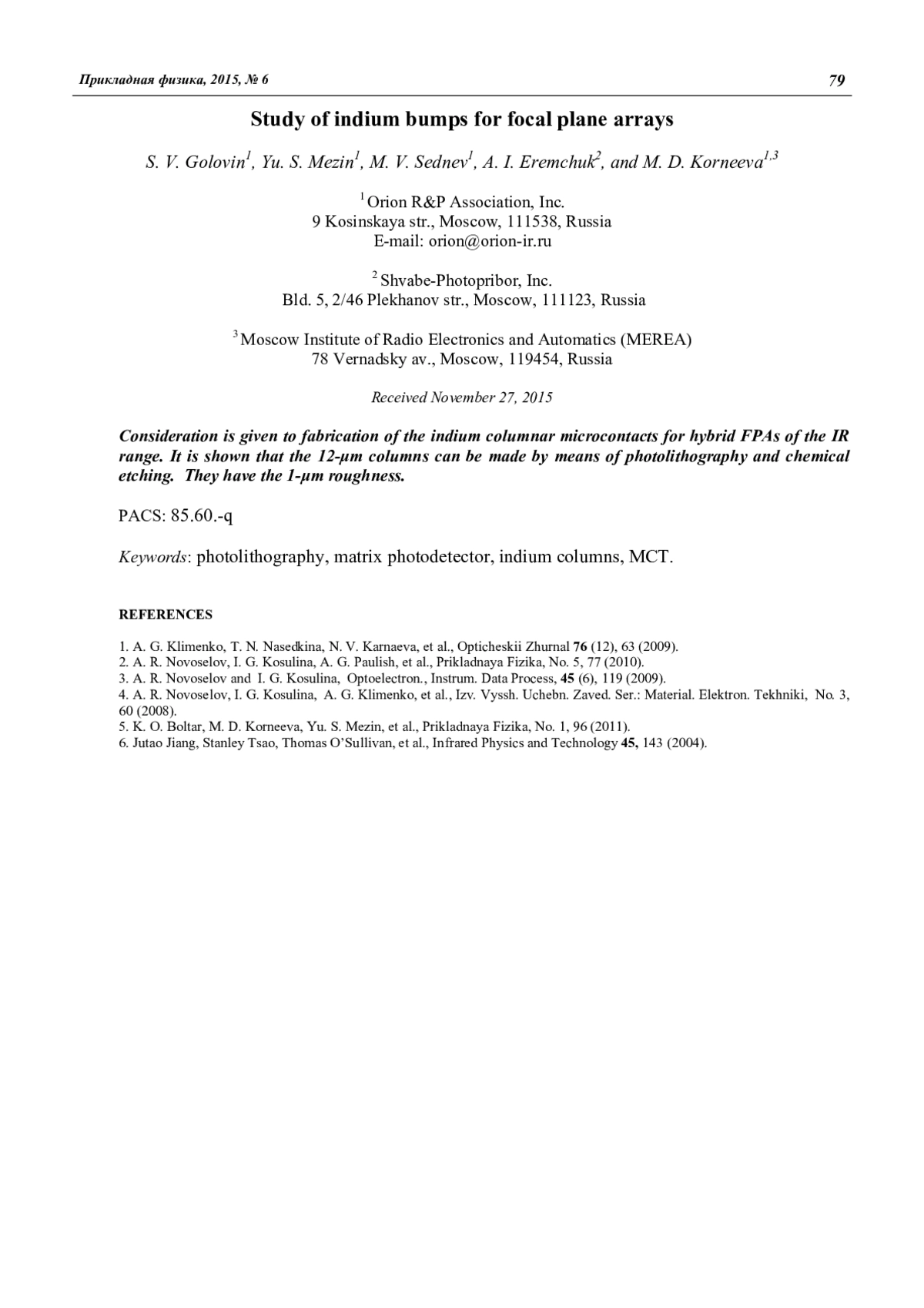 5. K. O. Boltar, M. D. Korneeva, Yu. S. Mezin, et al., Prikladnaya Fizika, No. 1, 96 (2011).