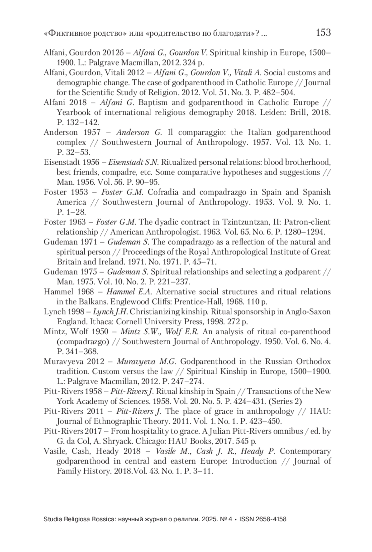 17. Gudeman 1975 - Gudeman S. Spiritual relationships and selecting a godparent // Man. 1975. Vol. 10. No. 2. P. 221-237.