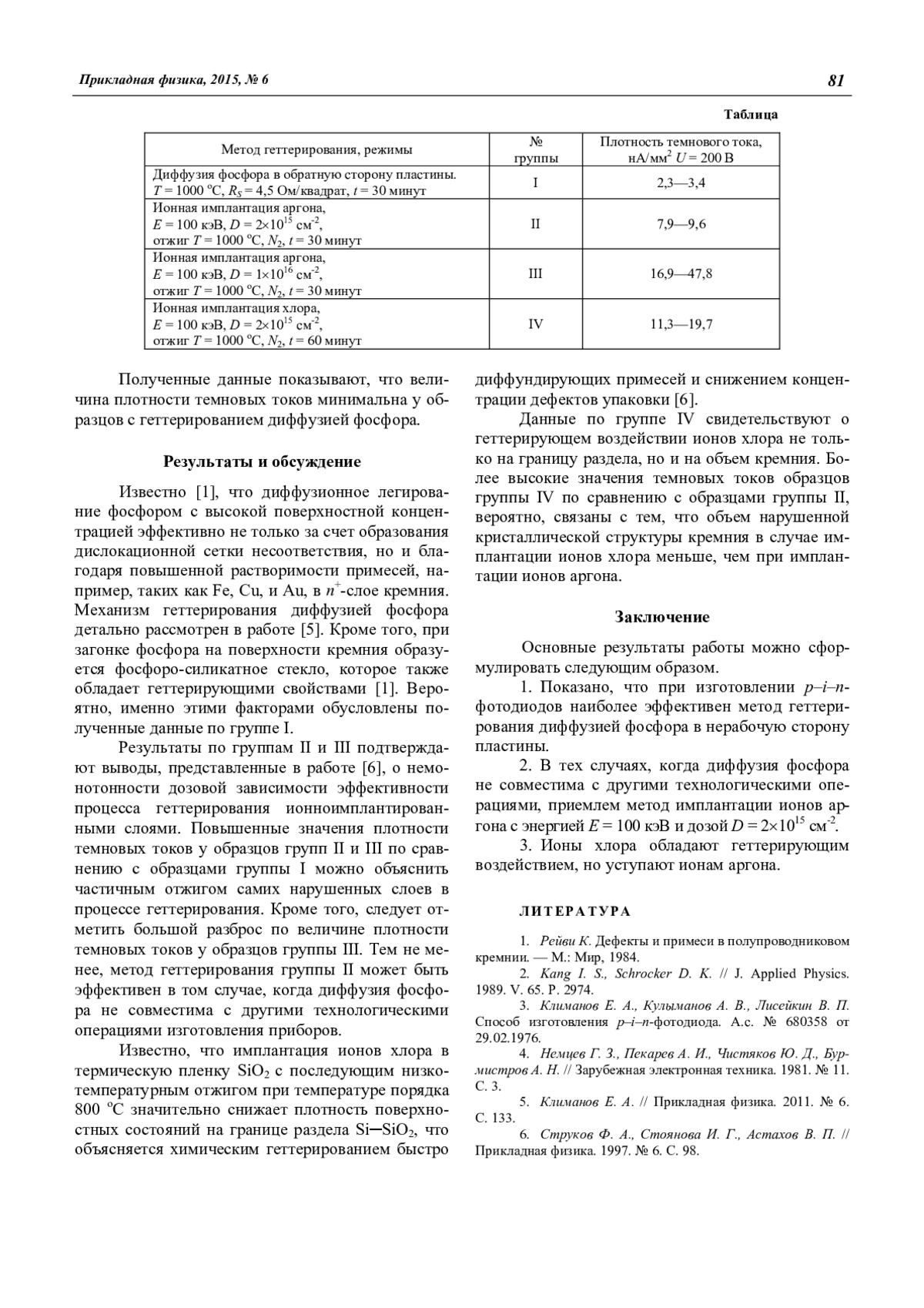 1. Показано, что при изготовлении p–i–nфотодиодов наиболее эффективен метод геттерирования диффузией фосфора в нерабочую сторону пластины.