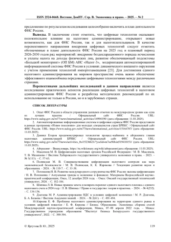 2. Автоматизированные информационные системы и цифровые сервисы ФНС России представили в рамках программы “Новое поколение” для молодых специалистов стран БРИКС / Официальный сайт ФНС России. URL: https://www.nalog.gov.ru/rn77/news/international_activities/15164787/(дата обращения: 11.03.2025).