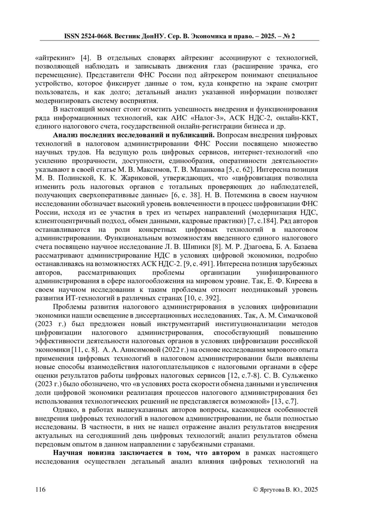 11. Симачкова А.М. Развитие налогового администрирования в условиях цифровой трансформации экономики: специальность 5.2.4: автореферат диссертации на соискание ученой степени кандидата экономических наук / Симачкова Анастасия Михайловна. - Москва, 2023. - 23 с. EDN: NDLYDI