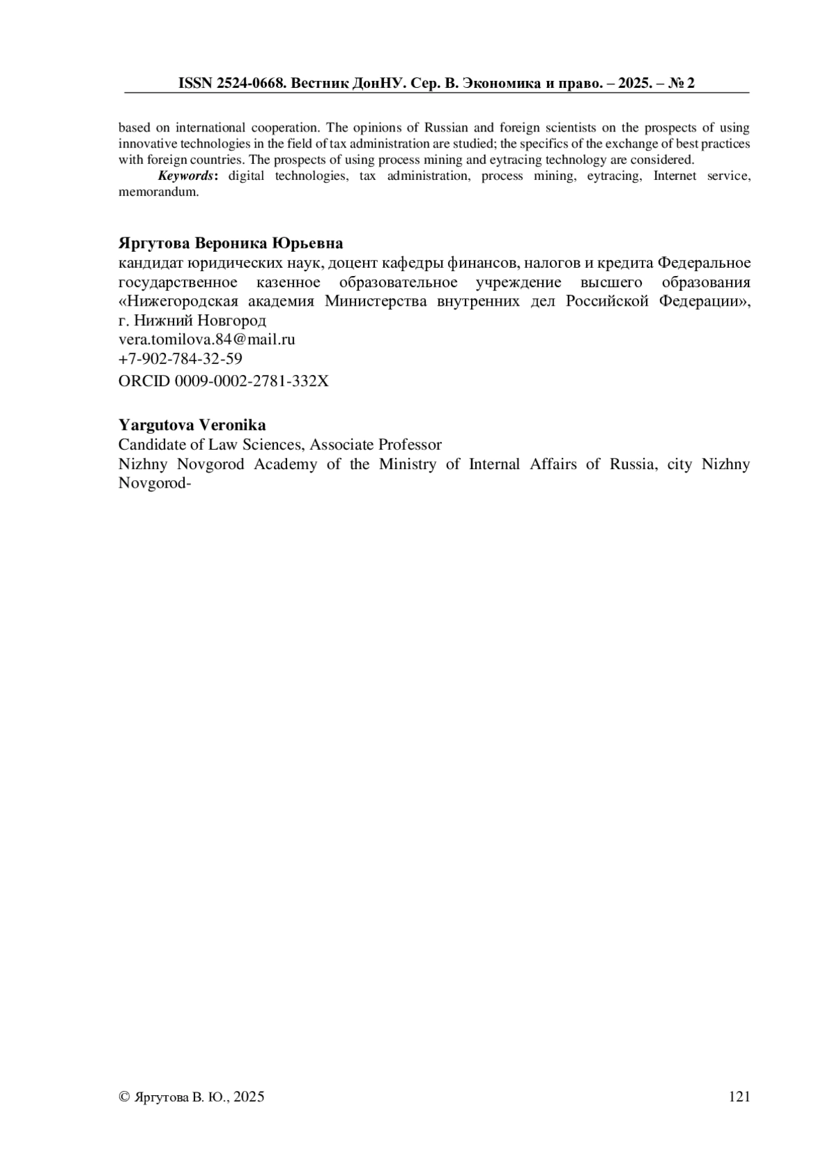 7. Потемкина Н. В. Развитие международного сотрудничества ФНС России: вызовы цифровизации / Н. В. Потемкина // Актуальные тренды в экономике и финансах: Материалы Всероссийской научно-практической конференции, Омск, 12 декабря 2024 года. - Омск: Омский государственный технический университет, 2024. - С. 182-184. EDN: KTLCJH