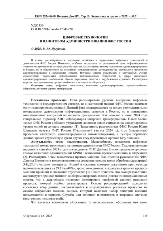 1. Опыт ФНС России в области управления данными отмечен на международном уровне как одна из лучших практик / Официальный сайт ФНС России. URL: https://www.nalog.gov.ru/rn77/news/international_activities/14994190/(дата обращения: 11.03.2025).