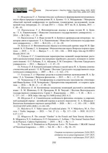 12. Павлюченкова Т. А. Фитонимическая лексика в языке поэзии И. А. Бунина / Т. А. Павлюченкова // Известия Смоленского государственного университета. - 2014. - № 2 (26). - С. 35-48.