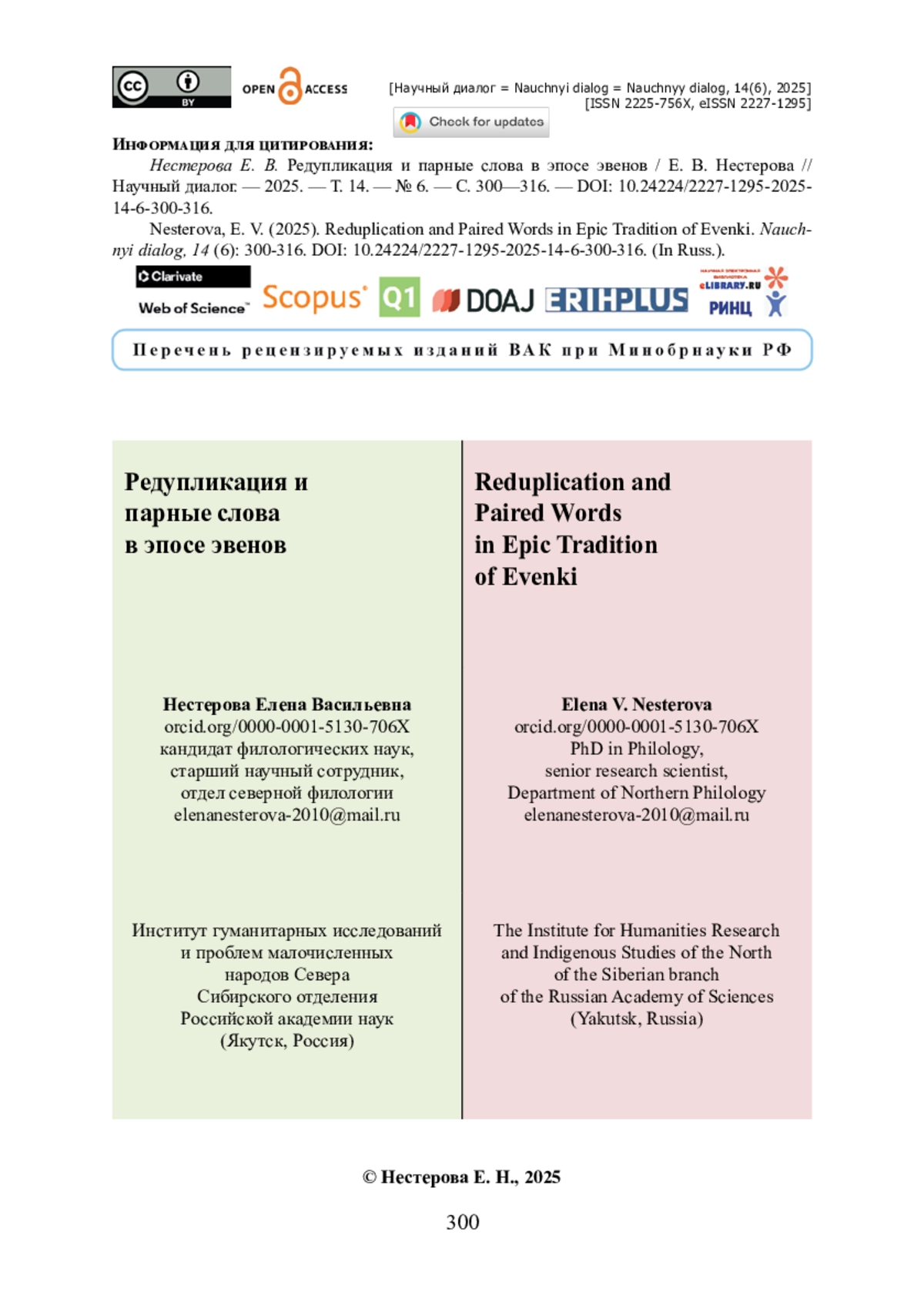 20. Саввинова С. Н. Эпос эвенов / С. Н. Саввинова, Е. В. Нестерова // Филологические науки. Вопросы теории и практики. - 2016. - № 5 (59). - С. 41-43.