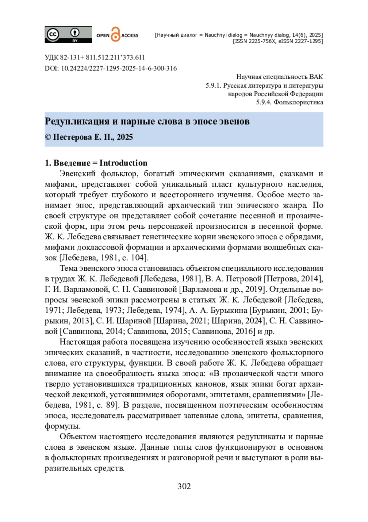 26. Шарина С. И. Вербальные традиции эвенов Якутии / С. И. Шарина, Р. П. Кузьмина, Е. В. Нестерова. - Новосибирск : Наука, 2023. - 343 с. - ISBN 978-5-02-041516-4.