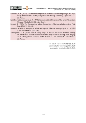 18. Сазонова З. Н. Тема вампиризма в современном русском фэнтези : происхождение и своеобразие / З. Н. Сазонова // Вестник Нижегородского университета им. Н. И. Лобачевского. - 2013. - № 1 (2). - С. 269-272.