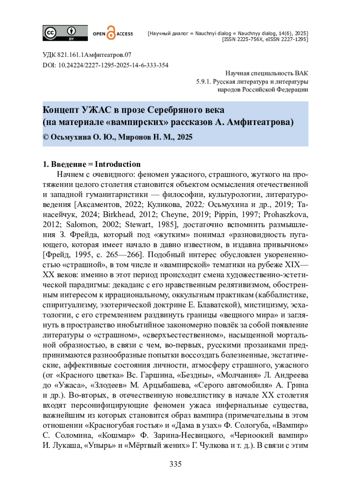 10. Миронов Н. М. Специфика рецепции образа вампира в мифологии и фольклоре народов мира / Н. М. Миронов // Art Logos (Искусство слова). - 2025. - № 1. - С. 10-23. - https://doi.org/10.35231/25419803_2025_1_10.