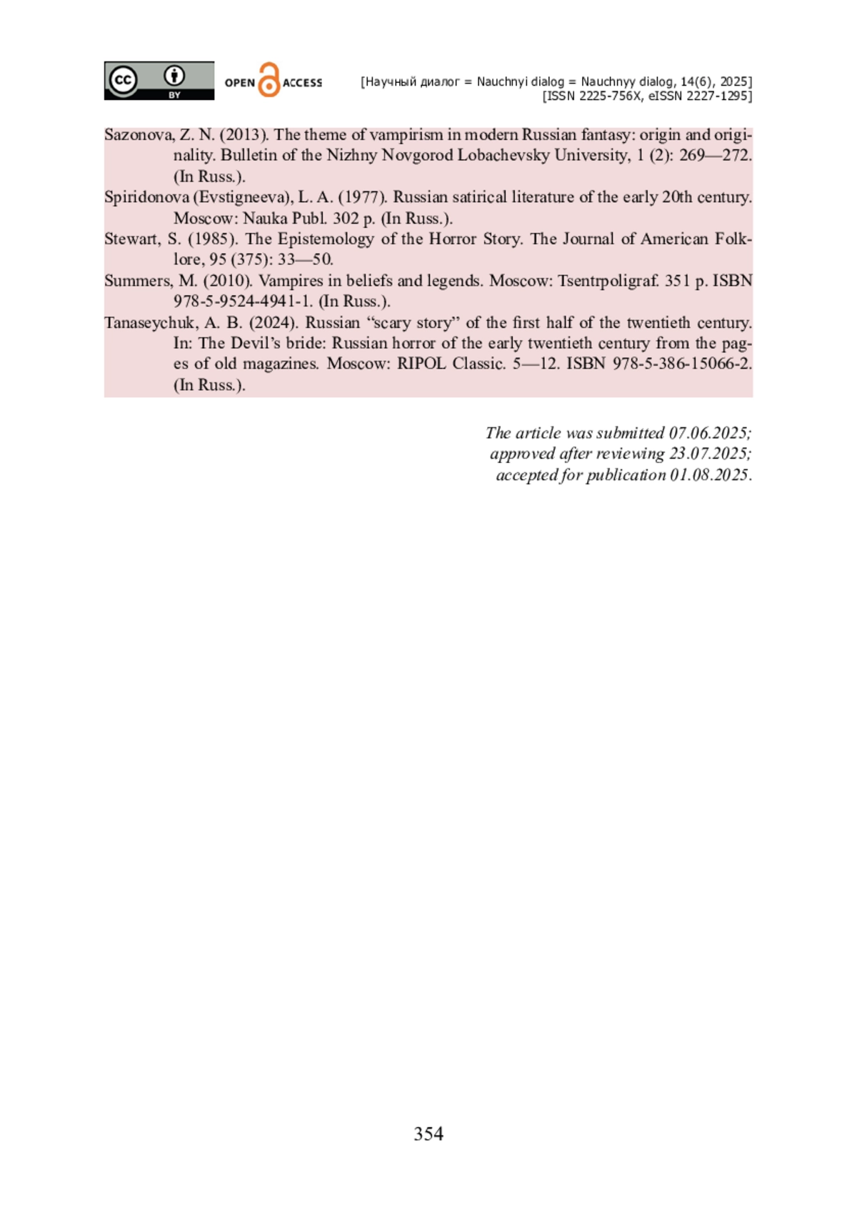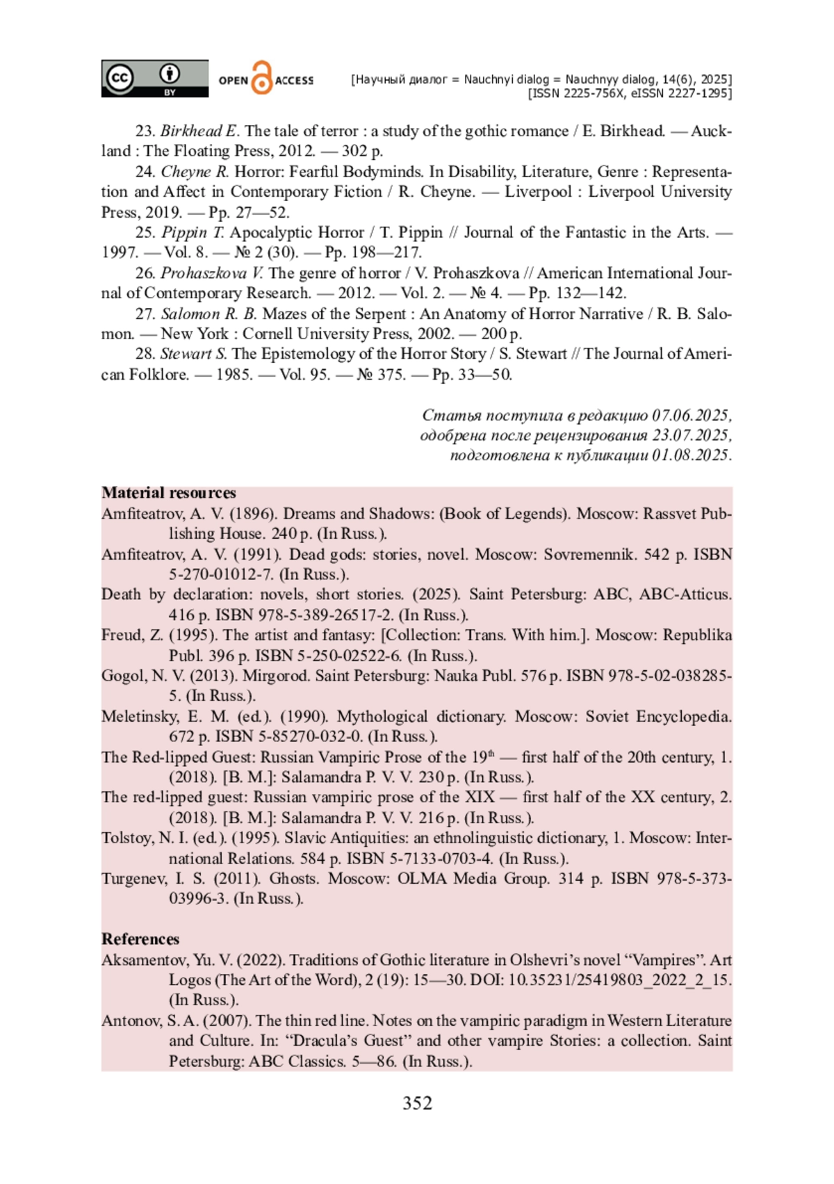 1. Аксаментов Ю. В. Традиции готической литературы в романе Олшеври «Вампиры» / Ю. В. Аксаментов // Art Logos (Искусство слова). - 2022. - № 2 (19). - С. 15- 30. - https://doi.org/10.35231/25419803_2022_2_15.