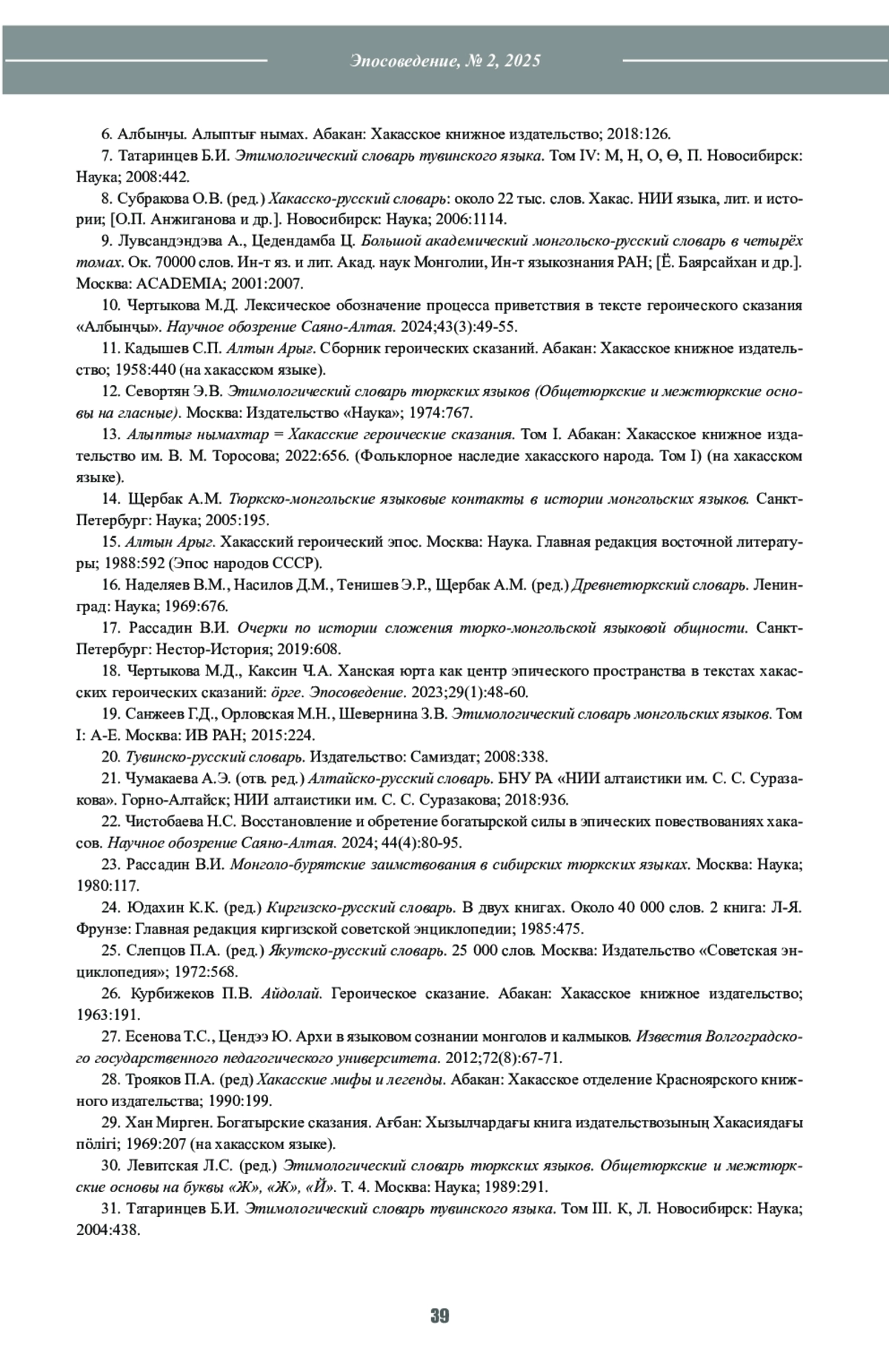 13. Мухаметзянова Л. Х. Дастан «Салсал» как татарское духовное наследие: варианты М. Юмачикова и Г. Исмагилова. Научный Татарстан. 2024;43(3):59-67 (на татарском языке).