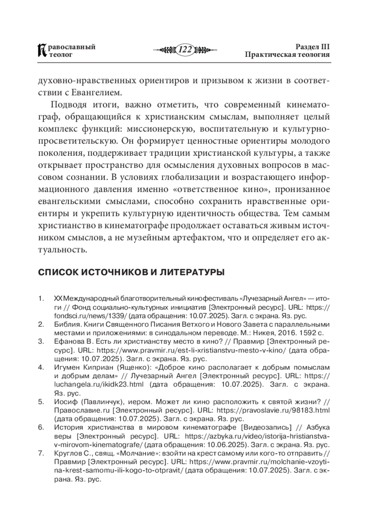 3. Ефанова В. Есть ли христианству место в кино? // Правмир [Электронный ресурс]. URL: https://www.pravmir.ru/est-li-xristianstvu-mesto-v-kino/ (дата обращения: 10.07.2025). Загл. с экрана. Яз. рус.