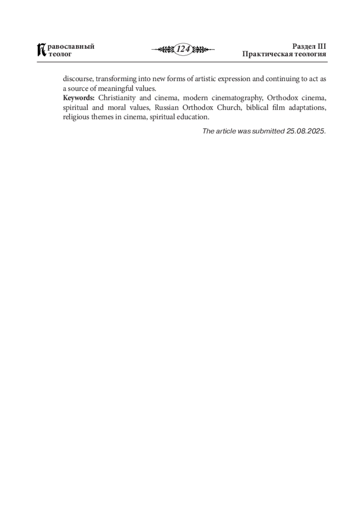 10. Протоиерей Фёдор Бородин: “Доброе кино возвышает изовет кпреображению” // Лучезарный Ангел [Электронный ресурс]. URL: https://luchangela.ru/ifbip23.html (дата обращения: 10.07.2025). Загл. с экрана. Яз. рус.