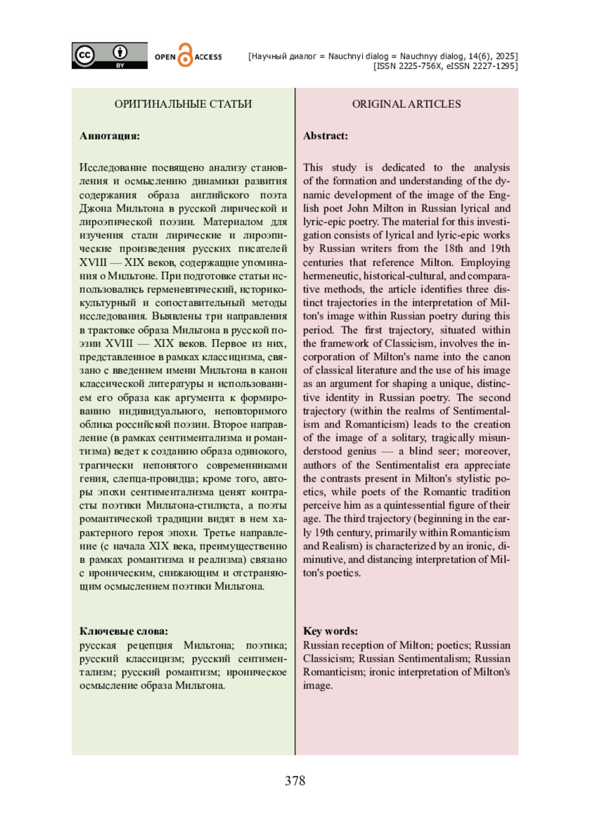 17. Паринова А. С. Мотивный комплекс рая в русской литературе под влиянием поэмы Дж. Мильтона «Потерянный рай» / А. С. Паринова // Ученые записки Новгородского государственного университета имени Ярослава Мудрого. - 2019. - № 2 (20). - С. 13-15. - https://doi.org/10.34680/2411-7951.2019.2(20).13.