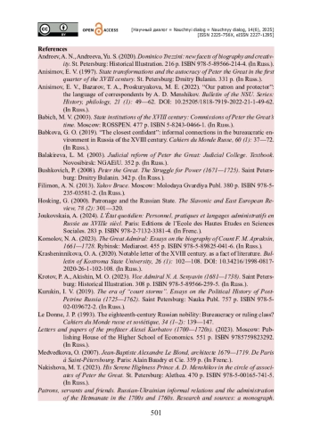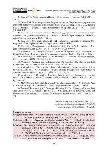 5. Бабкова Г. О. «Ближайший конфидент» : неформальные связи в бюрократической среде в России XVIII в. / Г. О. Бабкова // Cahiers du Monde Russe. - 2019. - Vol. 60. - № 1. - Pp. 37-72.