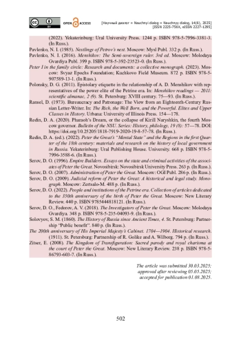 24. Серов Д. О. Люди и учреждения Петровской эпохи. Сборник статей, приуроченный к 350-летнему юбилею со дня рождения Петра I / Д. О. Серов ; сост. Е. В. Анисимов и Е. В. Акельев. - Москва : Новое литературное обозрение, 2022. - 440 с. - ISBN 9785444818121.
