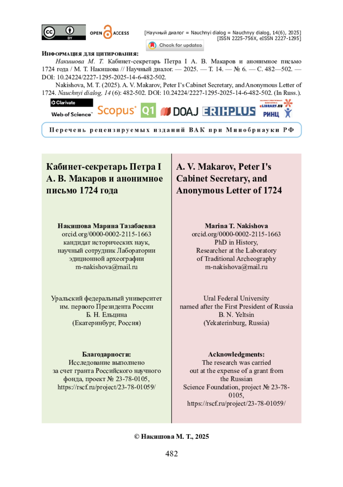 22. Редин Д. А. Сон фараона, или крах Кирилла Нарышкина, четвертого московского губернатора / Д. А. Редин // Вестник НГУ. Серия : История, филология. - 2020. - Т. 19. - № 8. - С. 57-78. - https://doi.org/10.25205/1818-7919-2020-19-8-57-78.