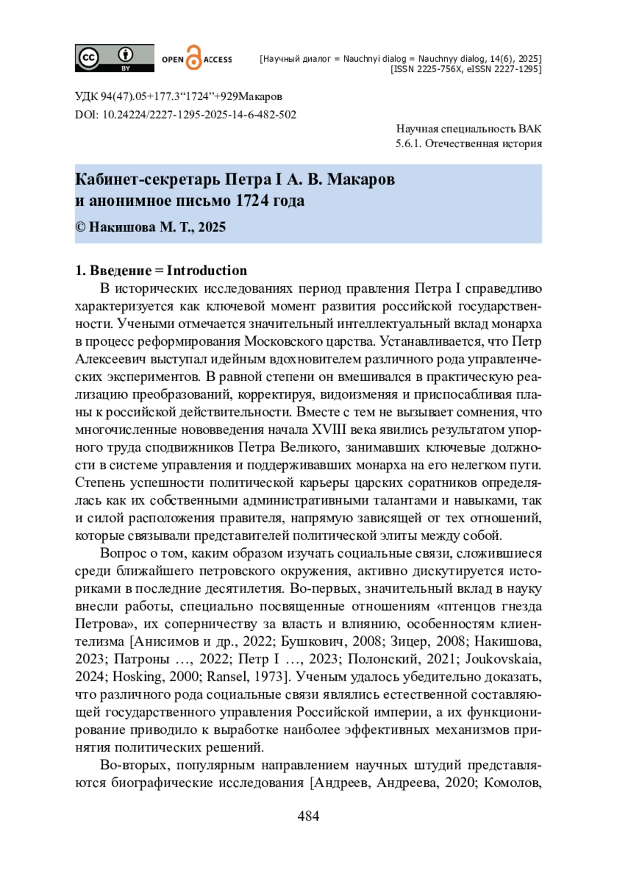 15. Накишова М. Т. Светлейший князь А. Д. Меншиков в кругу сподвижников Петра I / М. Т. Накишова. - Санкт-Петербург : Алетейя, 2023. - 470 с. - ISBN 978-5- 00165-741-5.