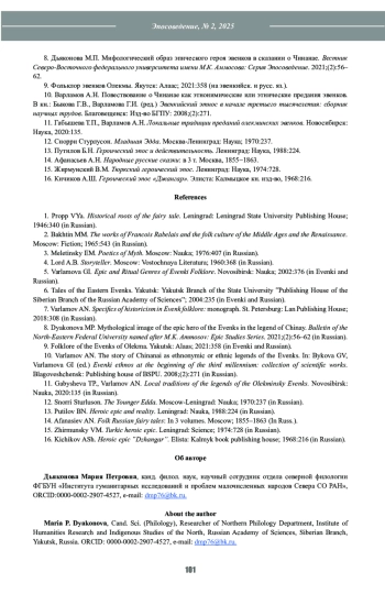 9. Фольклор эвенков Олекмы. Якутск: Алаас; 2021:358 (на эвенкийск. и русс. яз.).