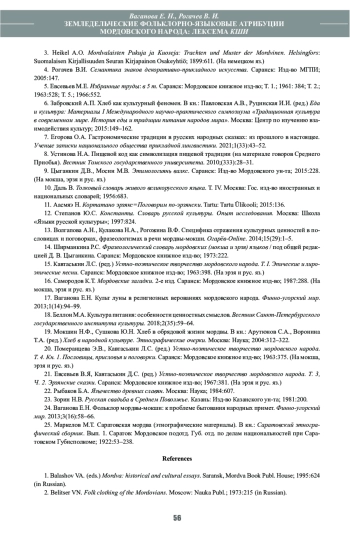 14. Ширманкина Р.С. Фразеологический словарь мордовских (мокша и эрзя) языков / под общей редакцией Д. В. Цыганкина. Саранск: Мордовское книжное изд-во; 1973:222.