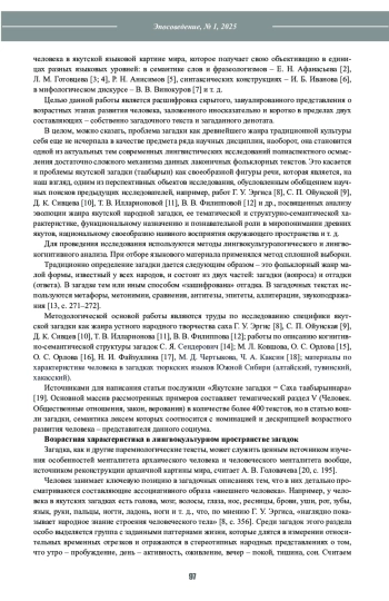4. Готовцева Л.М. Репрезентация семантического поля “Возраст человека” в якутском языке. Международный научно-исследовательский журнал. 2022;126(12):1-4.